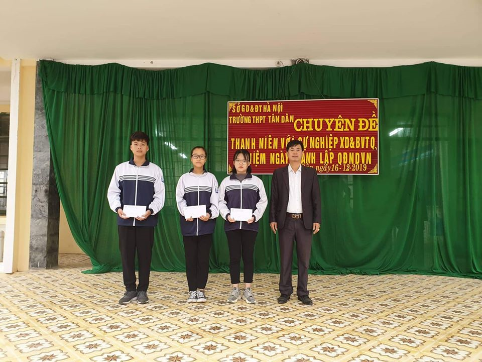 Sáng ngày 16/12/2019, trước khi thực hiện chuyên đề tháng 12. Đại diện, BGH đã thay mặt công ty AIC đã trao học bổng "9999 tết" cho ba học sinh đã vượt qua hoàn cảnh khó khăn, vươn lên trong học tập và rèn luyện. Mỗi xuất học bổng trị giá 5.000.000đ, đươc biết đây là năm đầu tiên học sinh của trường đạt học bổng do công ty tài trợ. Hy vọng, các em sẽ cố gắng vươn lên trong các năm học tập tại trường THPT Tân Dân.